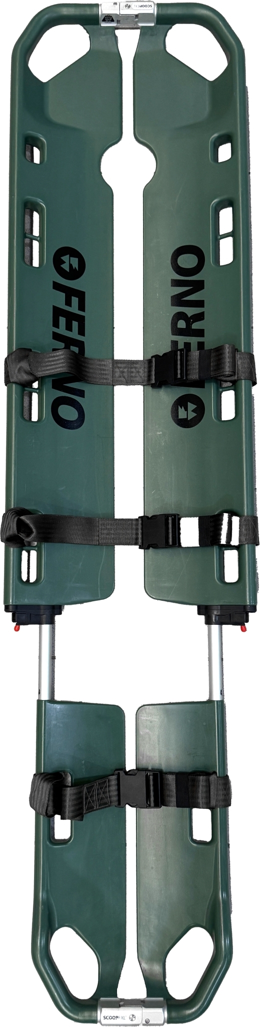 The EXL-M Scoop Stretcher is made from X-Ray translucent, lightweight high-impact composite materials. Twin hinges with Safety Lock® allow medics to pick up a patient without having to roll the patient over. An adjustable foot section with (4) length options accommodate patient of different heights. The EXL-M folds to 47” for compact storage. MRI compatible. Made in Italy.