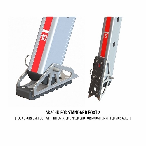 The Arachnipod's uniquely designed head system enables legs to be quickly disconnected from each other to store flat for compact storage and transportation. Each of the legs is supplied with an upgraded Standard Foot 2.