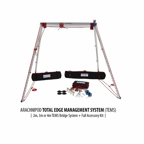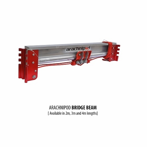 The Arachnipod Standard Bridge system comprises three Standard Legs and one Pulley Leg plus a 2m, 3m or 4m long Bridge beam. The system provides three load attachment points, four stabilisation rigging points, one double-grooved pulleys plus the versatility to configure additional technical systems.