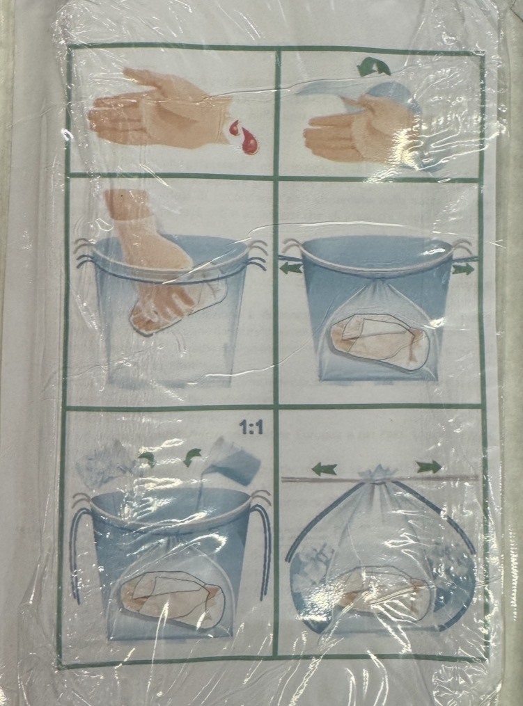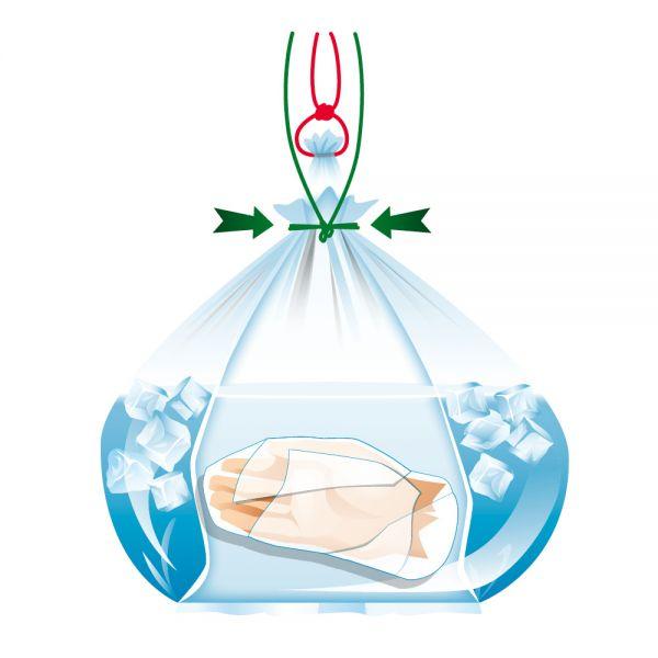 The AMPUTATE BAG is a double-walled bag, consisting of two sterile bags (first inside the second, sealed together) which allows cooling substances between the two bags, without direct contact between coolant and amputate.