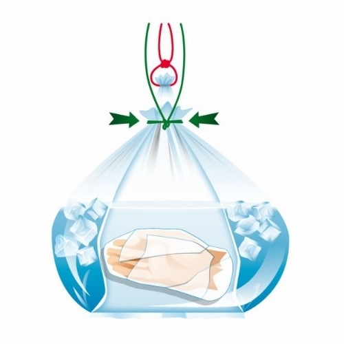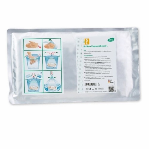 The supplied bags are sterile, with the inner and outer bags permanently sealed together for safe handling. The amputated body part is placed in the inner bag, while the outer bag is filled with artificial ice and water to ensure controlled cooling. The box should then be transported to the hospital as quickly as possible.