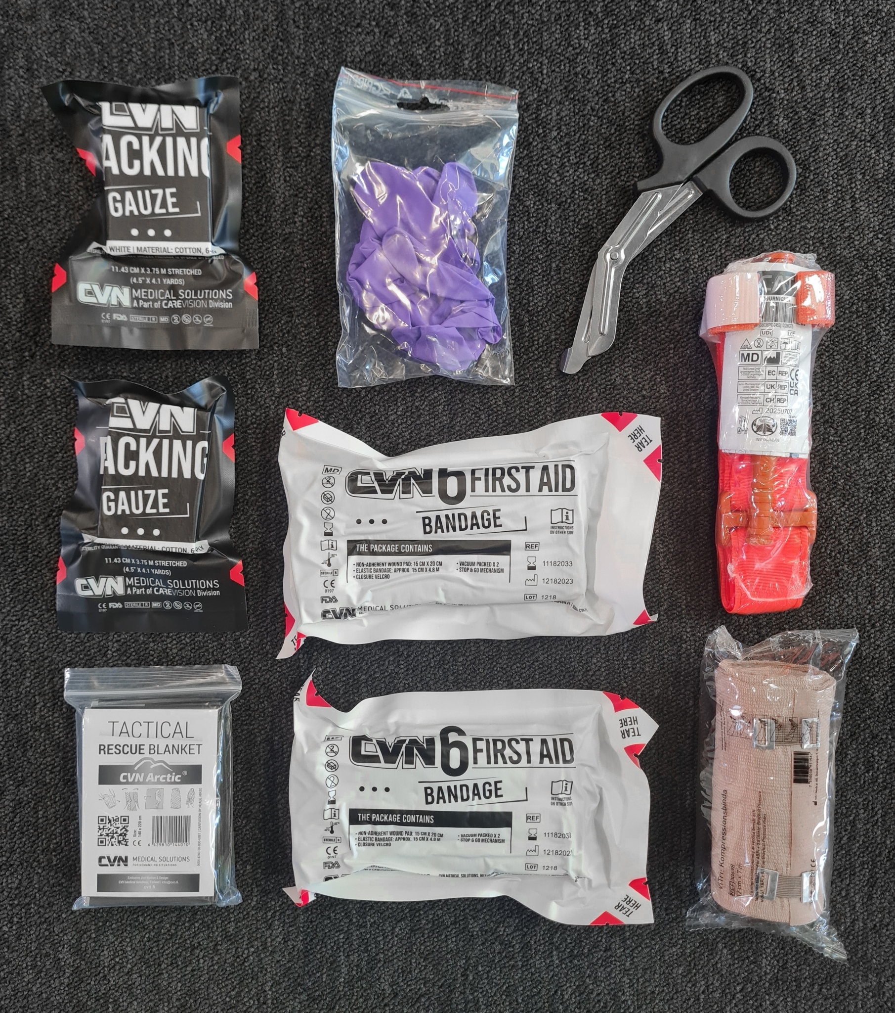 The kit includes a well-curated selection of essential components, such as high-quality bandages, advanced packing gauze, and the renowned CAT tourniquet. Each item is chosen to provide reliable and immediate care, ensuring you are fully prepared to address severe bleeding in any scenario.