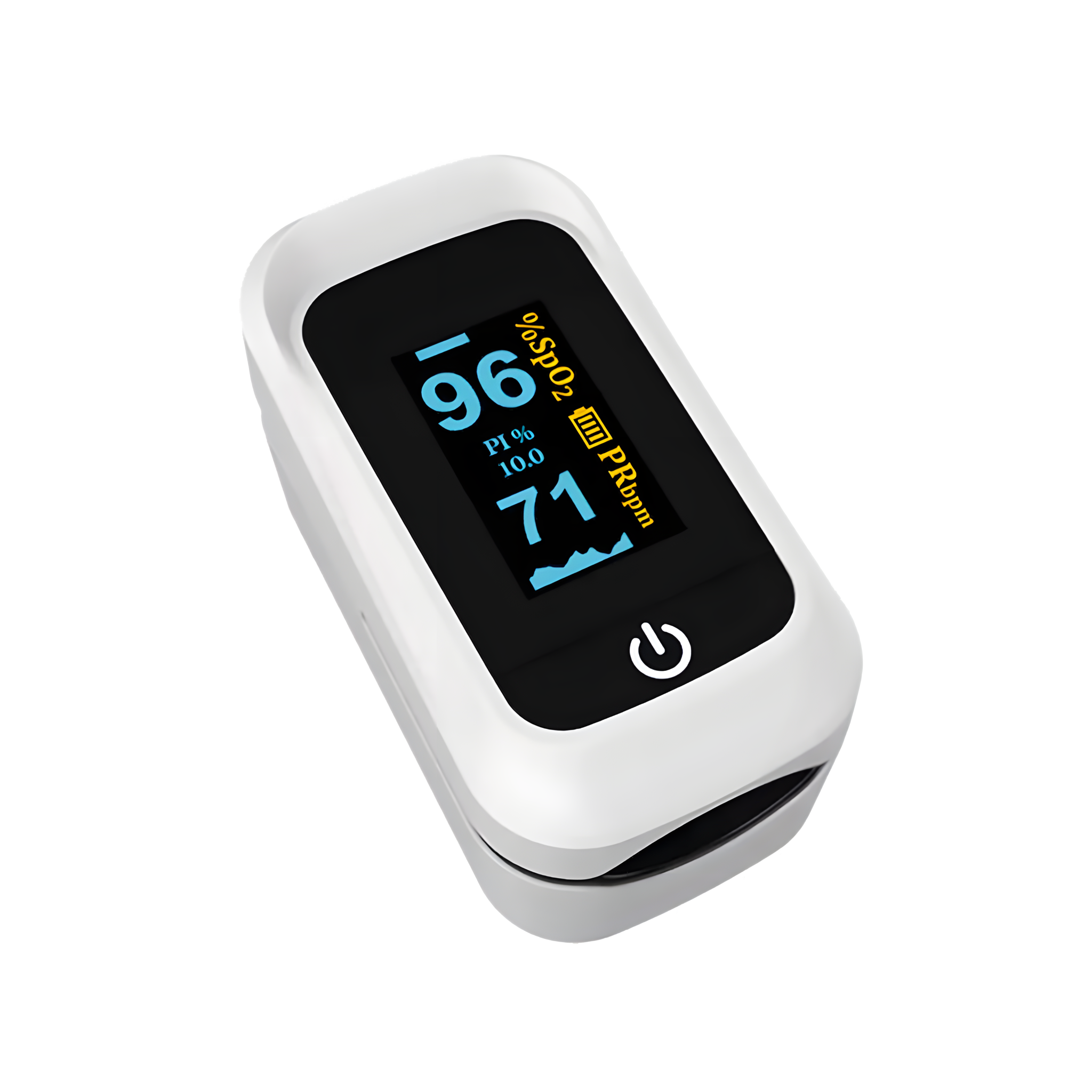 - Measures oxygen saturation (SpO₂) and pulse rate