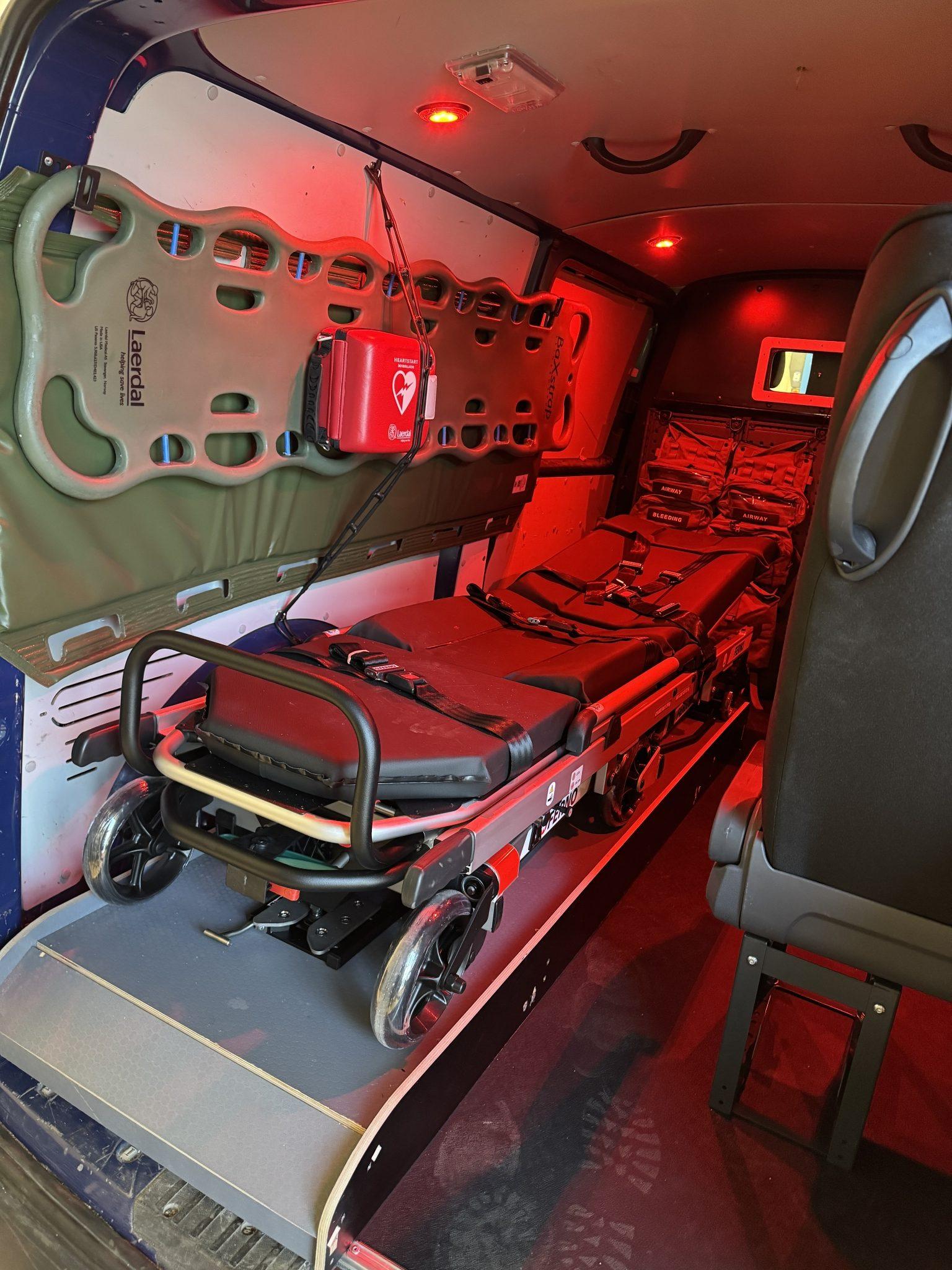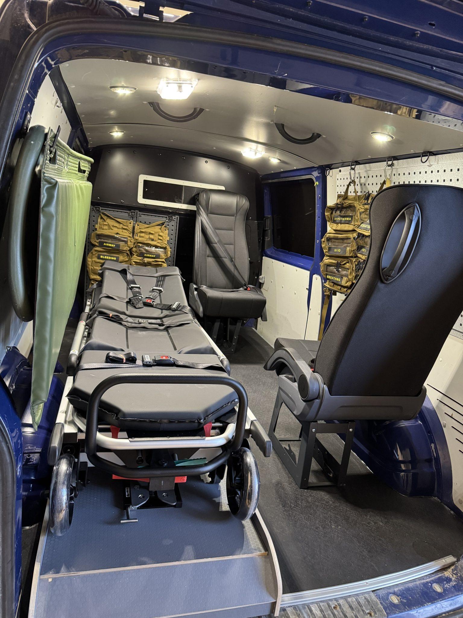 - Dedicated seat for the medic with ceiling-mounted grab handles for stability